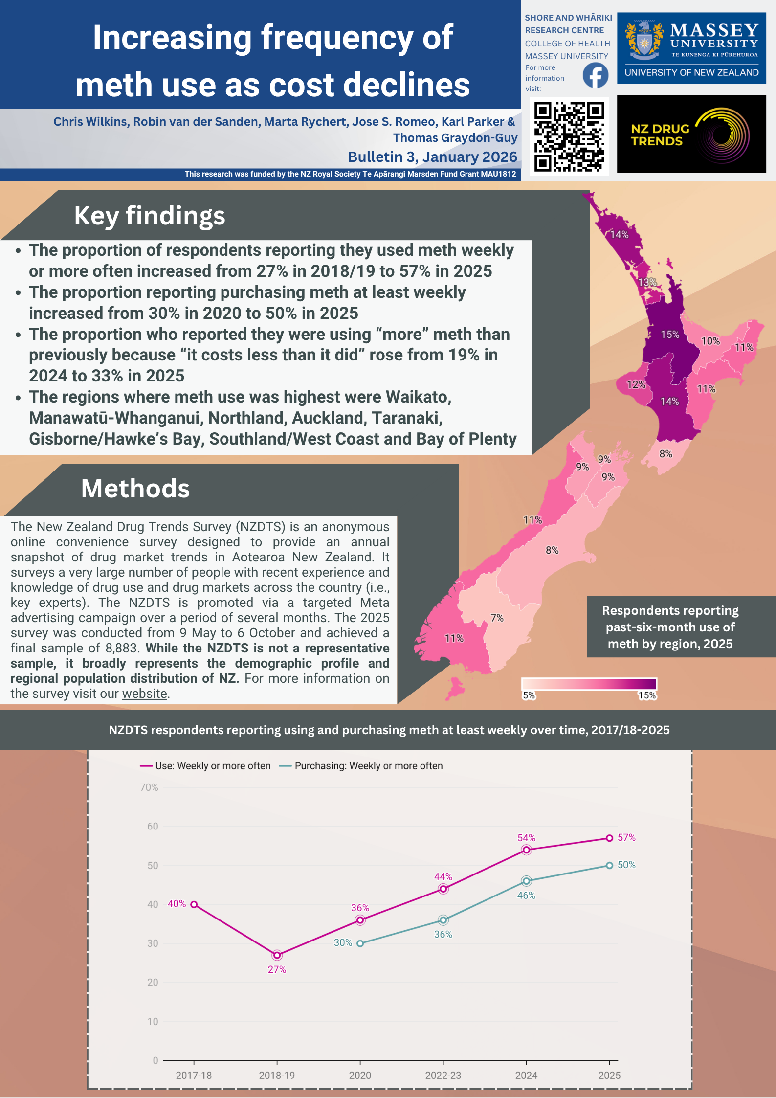 The Drug research team is planning several releases through to April 2026, prior to the start of a new round of NZDTS recruitment for 2026. All bulletins will be accessible via the NZ Drug Trends website.
